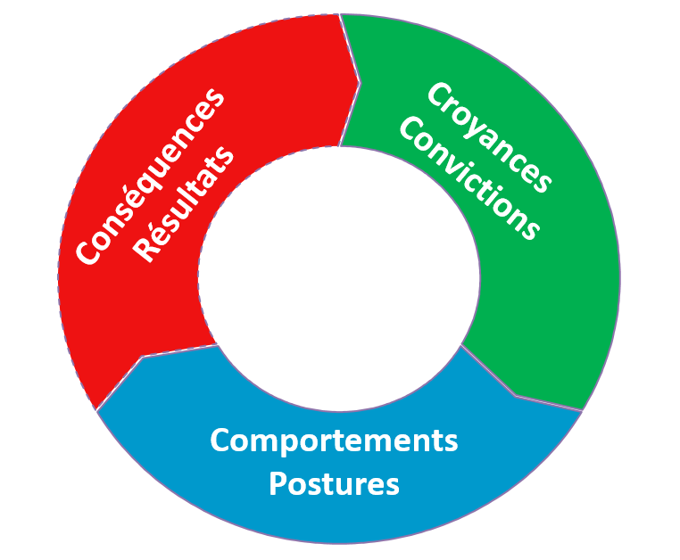 Le premier pilier est le leader en tant que personne publique. Il a des croyances et des convictions. Celles-ci induisent des comportements et des postures, qui eux-mêmes induisent des conséquences et des résultats.